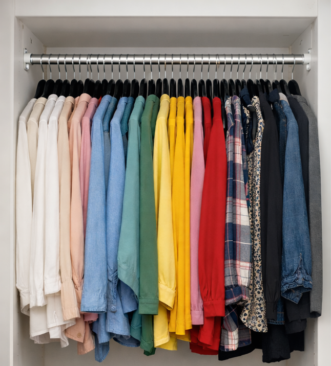 Das bringt visuelle Ruhe – und macht den Schrank sofort ordentlicher.