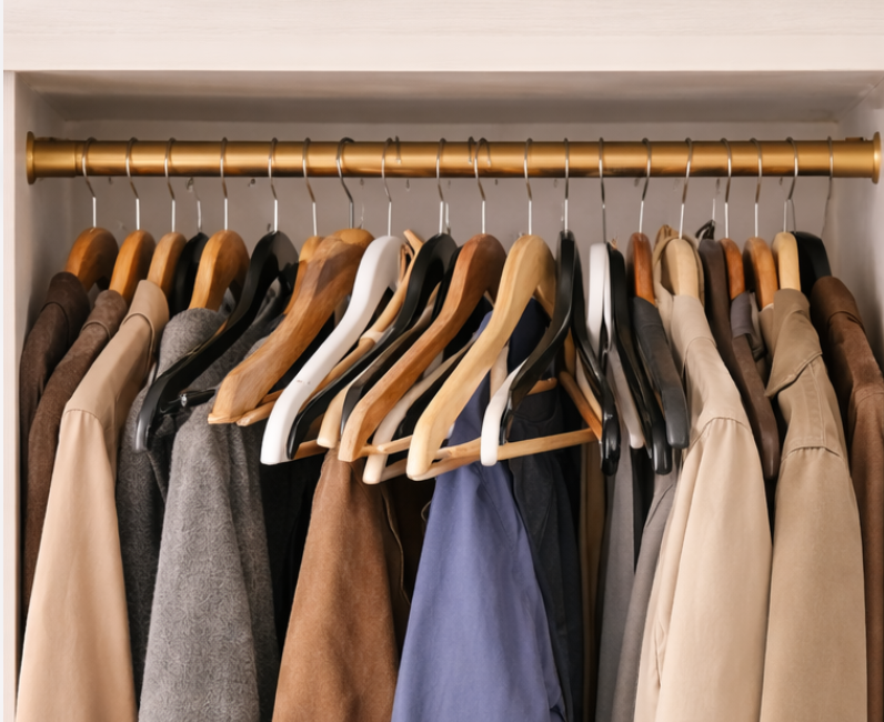 Für schwere Jacken und Mäntel, einheitlicher Look – der Schrank wirkt sofort ruhiger und aufgeräumt.